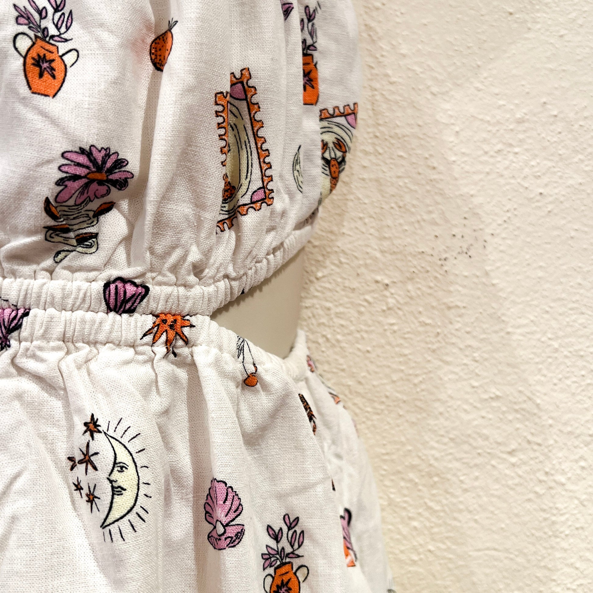 - White Print Fabric with Side Cutouts
